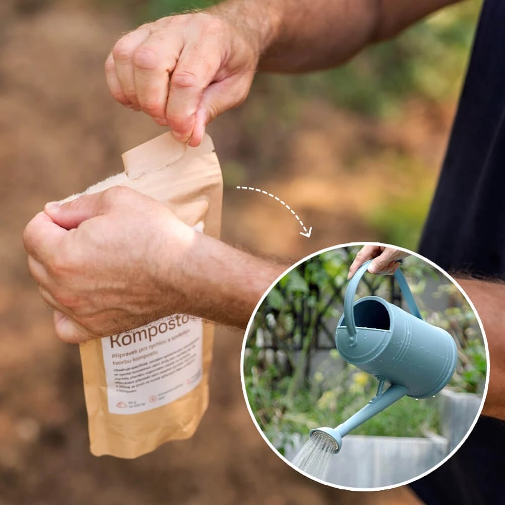 - Při zakládání kompostu prolijte přibližně každou 20 cm vrstvu.