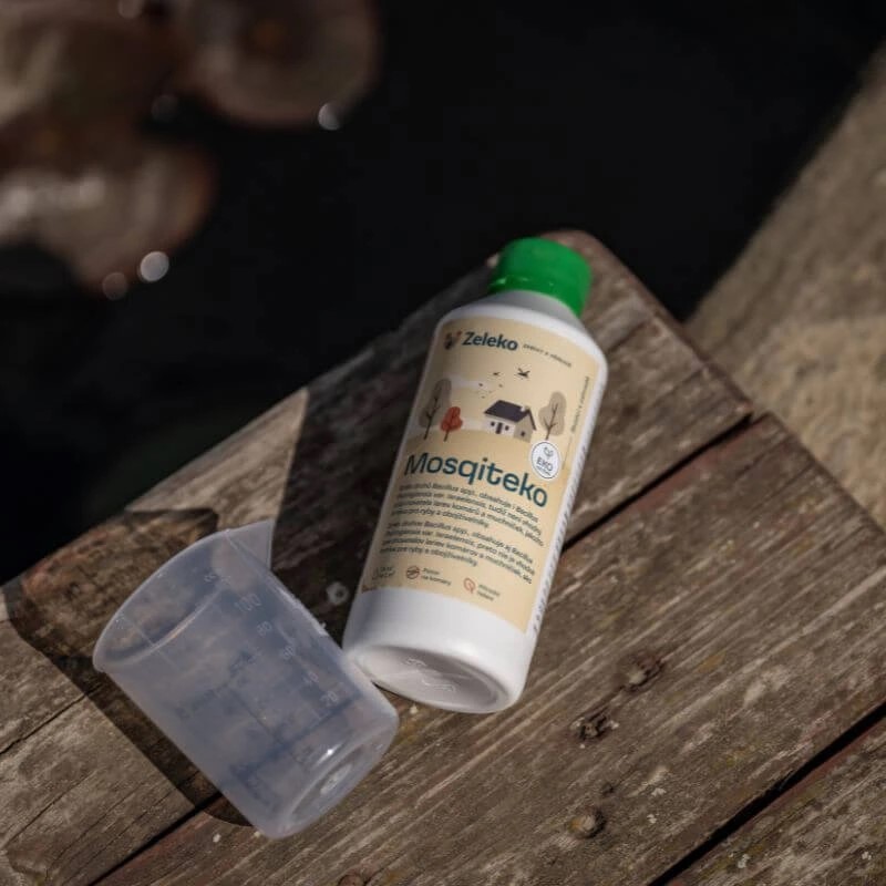 MOSQITEKO od značky Zeleko je ekologický přípravek na bázi přírodních bakterií, který cíleně likviduje larvy komárů ve stojaté vodě – bez chemie a bez rizika pro okolí. Přípravek Mosqiteko obsahuje směs přírodních bakterií Bacillus spp., včetně Bacillus thuringiensis var. israelensis, kterými se v určitém životním cyklu živí larvy komárů, tyto bakterie po pozření larvami naruší jejich trávicí systém, což vede k jejich likvidaci a zabrání dalšímu množení. POZOR ! Tento přípravek není vhodný pro chovatele larev komárů a muchniček jako krmiva pro ryby a obojživelníky.